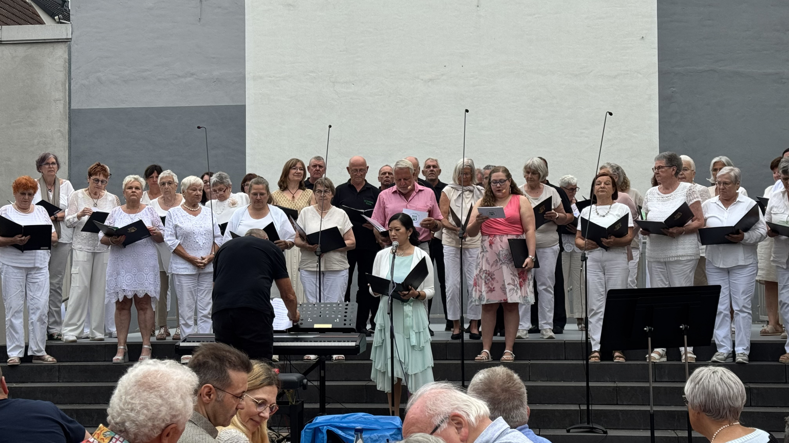 Unterstützt von den Kirrlacher Sängerinnen trug unser Gemischter Chor ein paar Lieder in verschiedenen Sprachen vor, diesmal professionell begleitet von der Solistin Yuki Nakashima, die im Anschluss mit einem Solobeitrag das Publikum begeisterte.