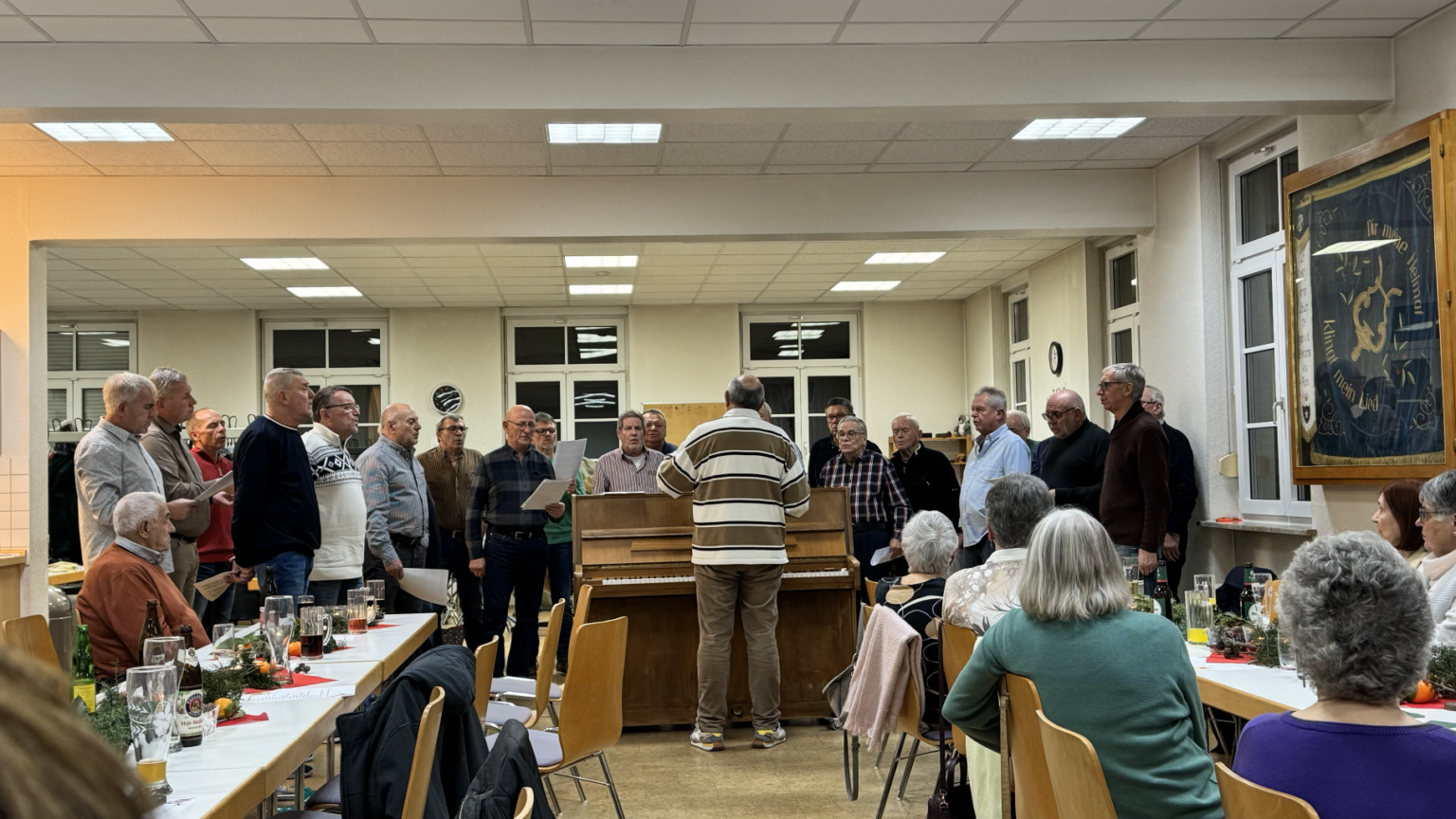 Am 16. Dezember 2025 fand im Probenraum in der Alten Schule unsere alljährliche Weihnachtsfeier statt. Zahlreiche Mitglieder trafen sich zum geselligen Beisammensein. Die Damen des Frauenchors brachten leckere Salate mit und das warme Büffet kam wieder vom ortsansässigen Caterer Johannes Vetter. Die beiden Chöre trugen unter der Leitung von Musikdirektor Richard Trares einige Lieder vor und heitere Vorträge von Emil Zimmermann und Clemens Kamuf sorgten für eine fröhliche Stimmung.